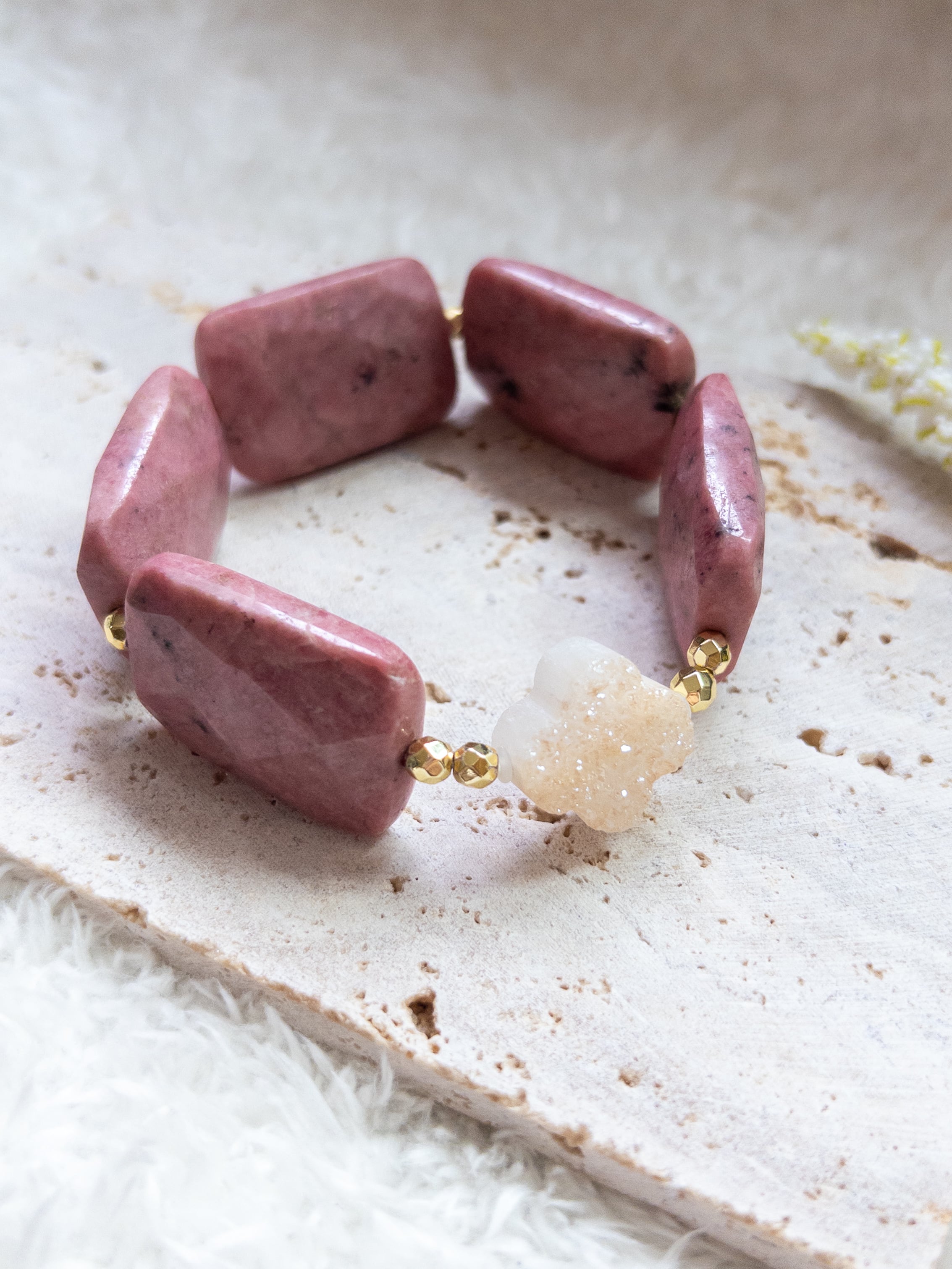 #天然石ブレスレット #ロードナイト #ドゥルージークォーツ #ONELifeONEChance #大人カジュアルアクセ #意味のあるアクセサリー#数珠感のない天然石デザインブレスレット