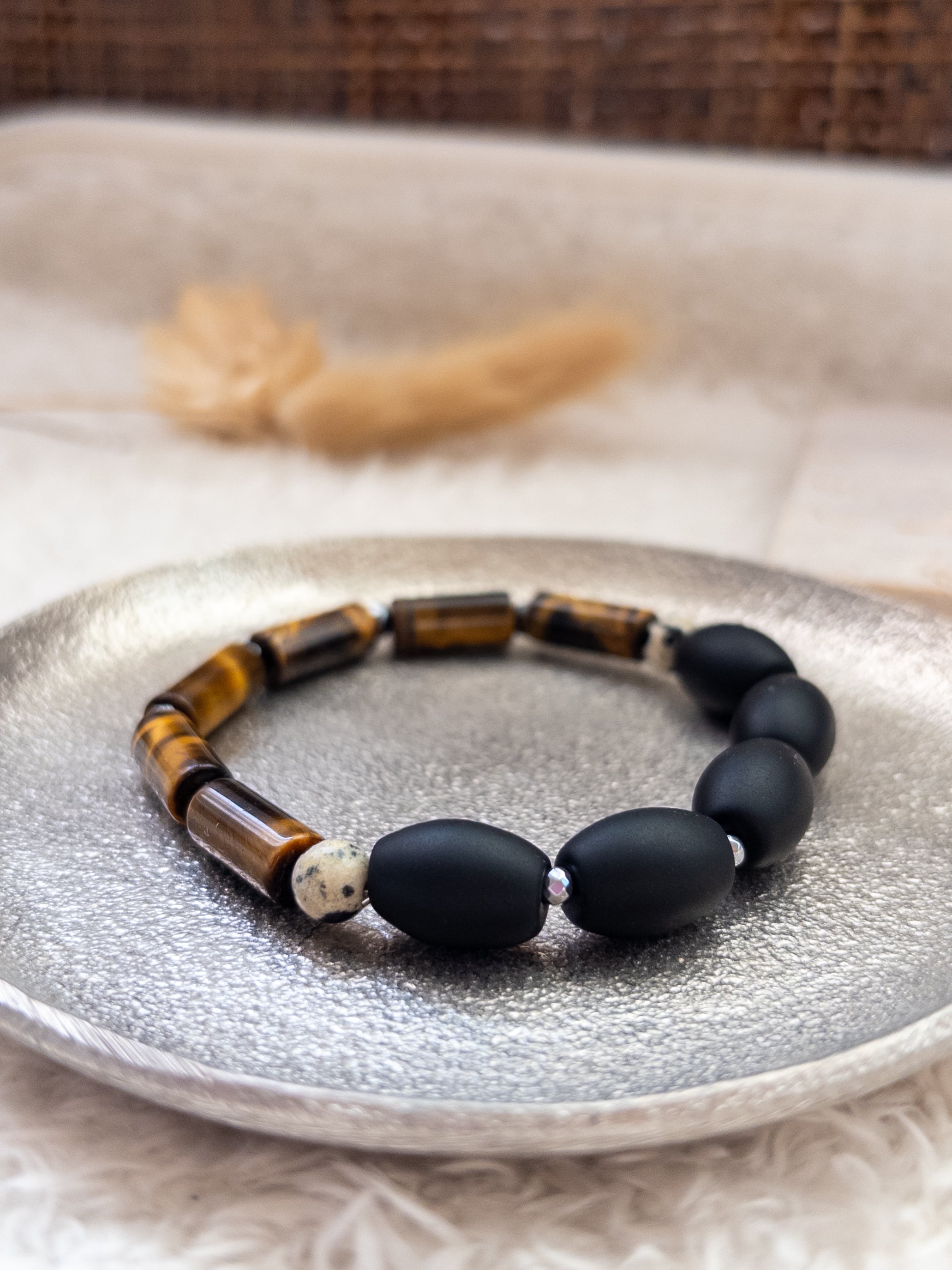 「挑戦する人の強い味方」タイガーアイ×ブラックオニキス×ダルメシアンジャスパーブレスレット